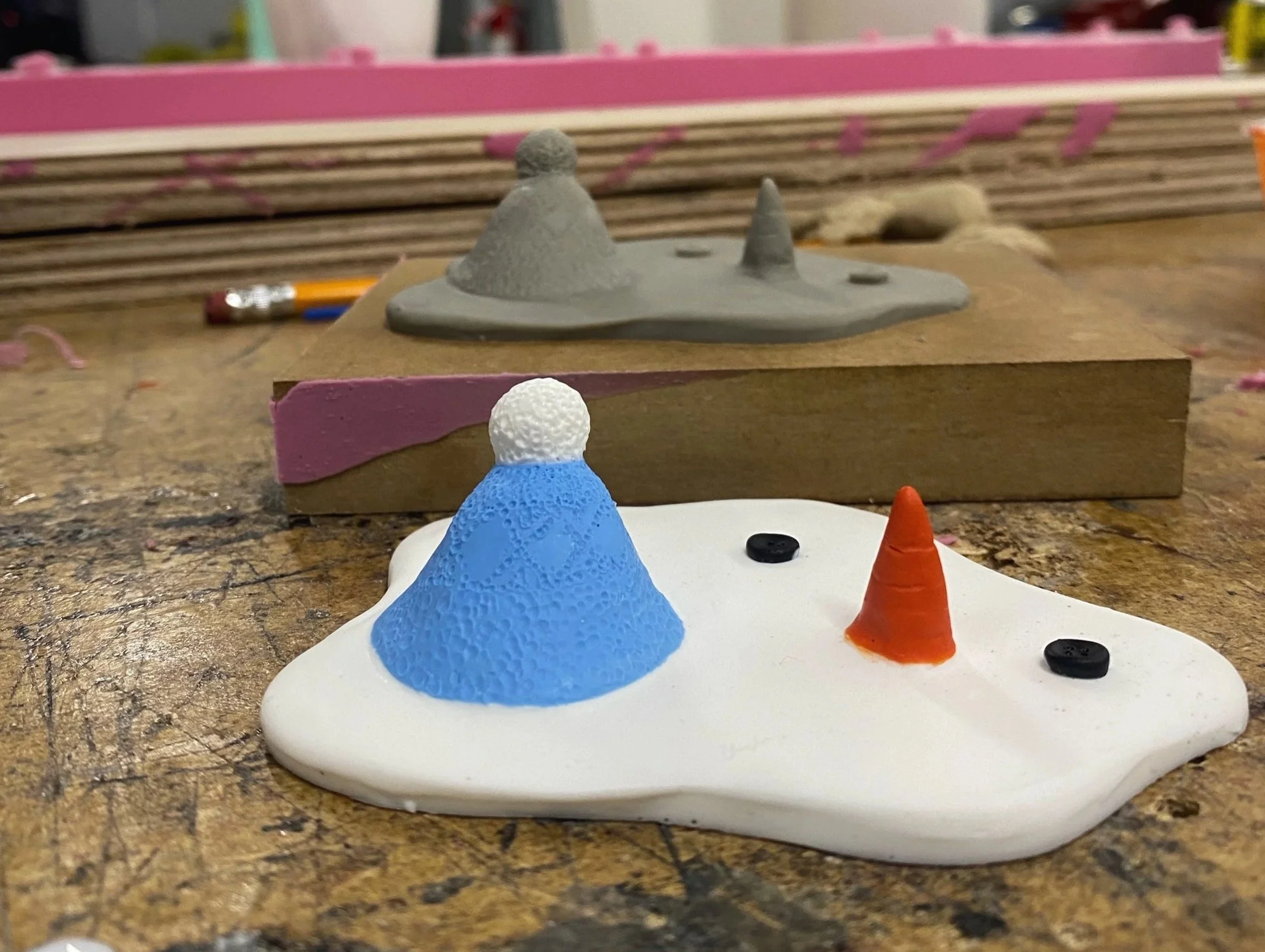 MElted SnowmanI sculpted, molded, and casted these melted snowmen. TheY Were customized as ornaments, magnets, or desk friends.