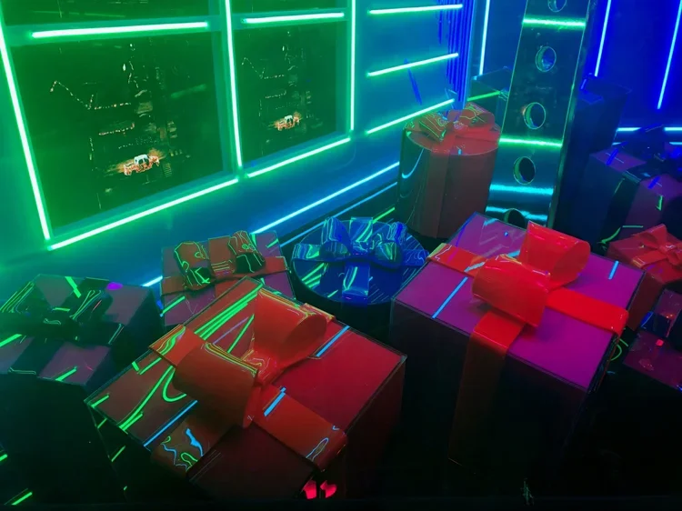 This was my first freelance job in the city. I worked in the props department wrapping tubes, decorating fake building facades, heat forming acrylic, vacuum forming houses, and building a giant acrylic and foam tree.