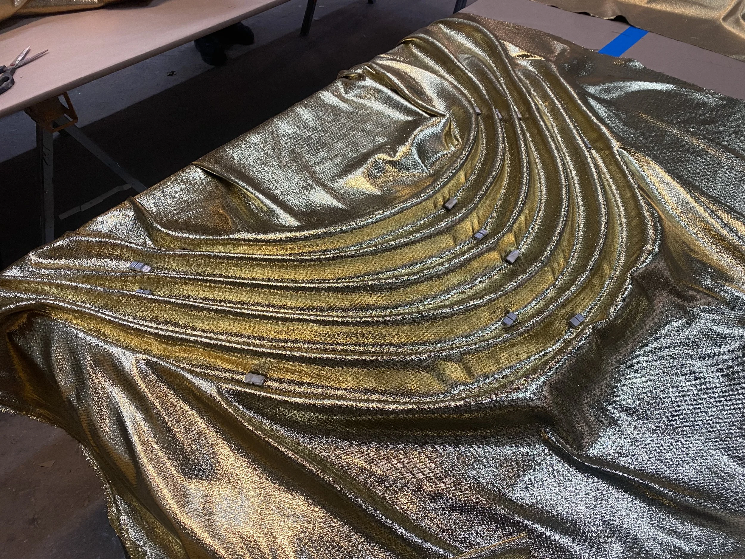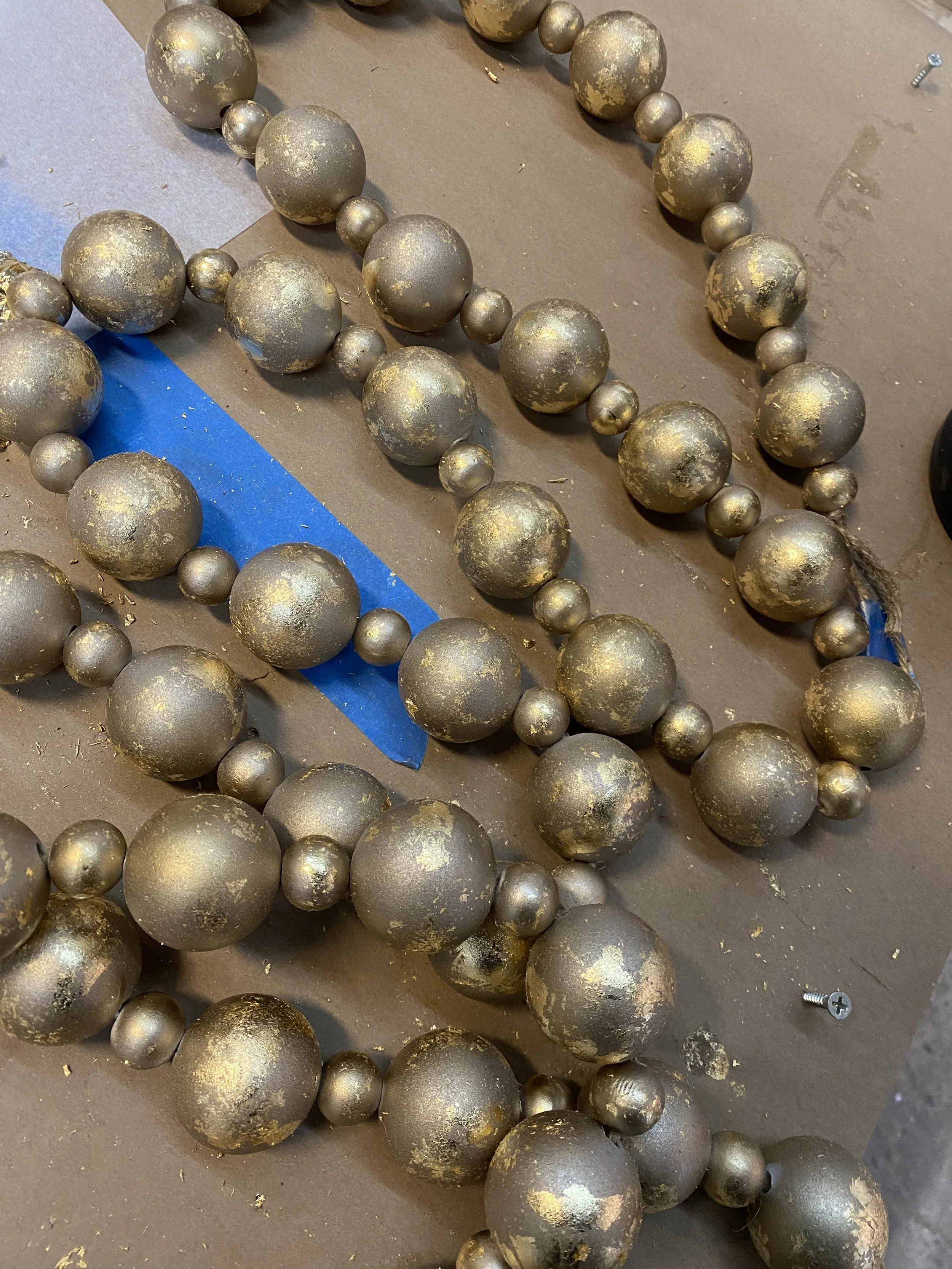 I worked with a team making faux swags that had magnets on them for ease of quick set changes for the Broadway musical Pirates! The Penzance Musical. I also helped string, paint, and distress beaded decorations.