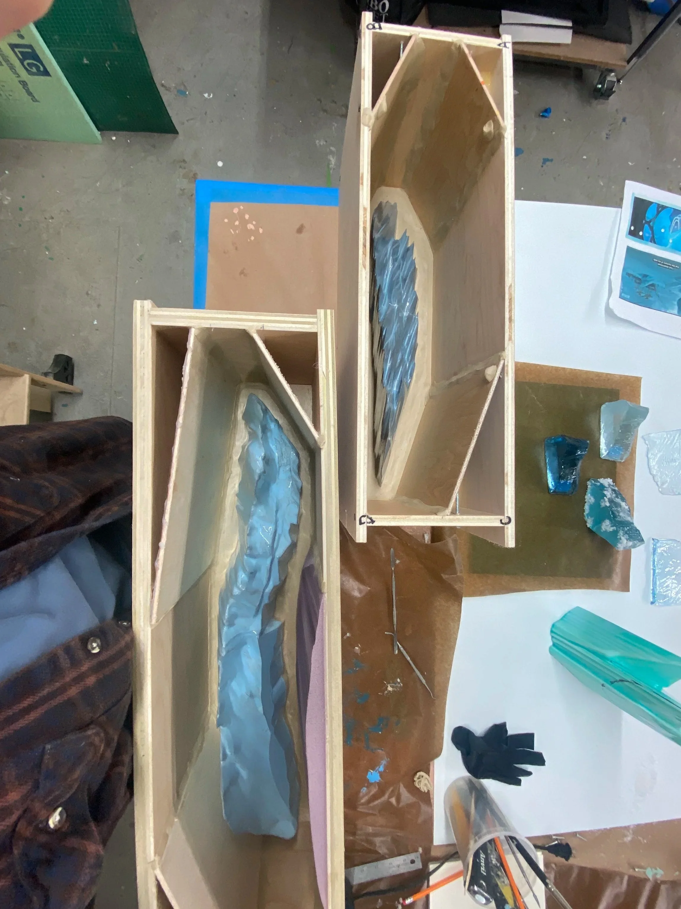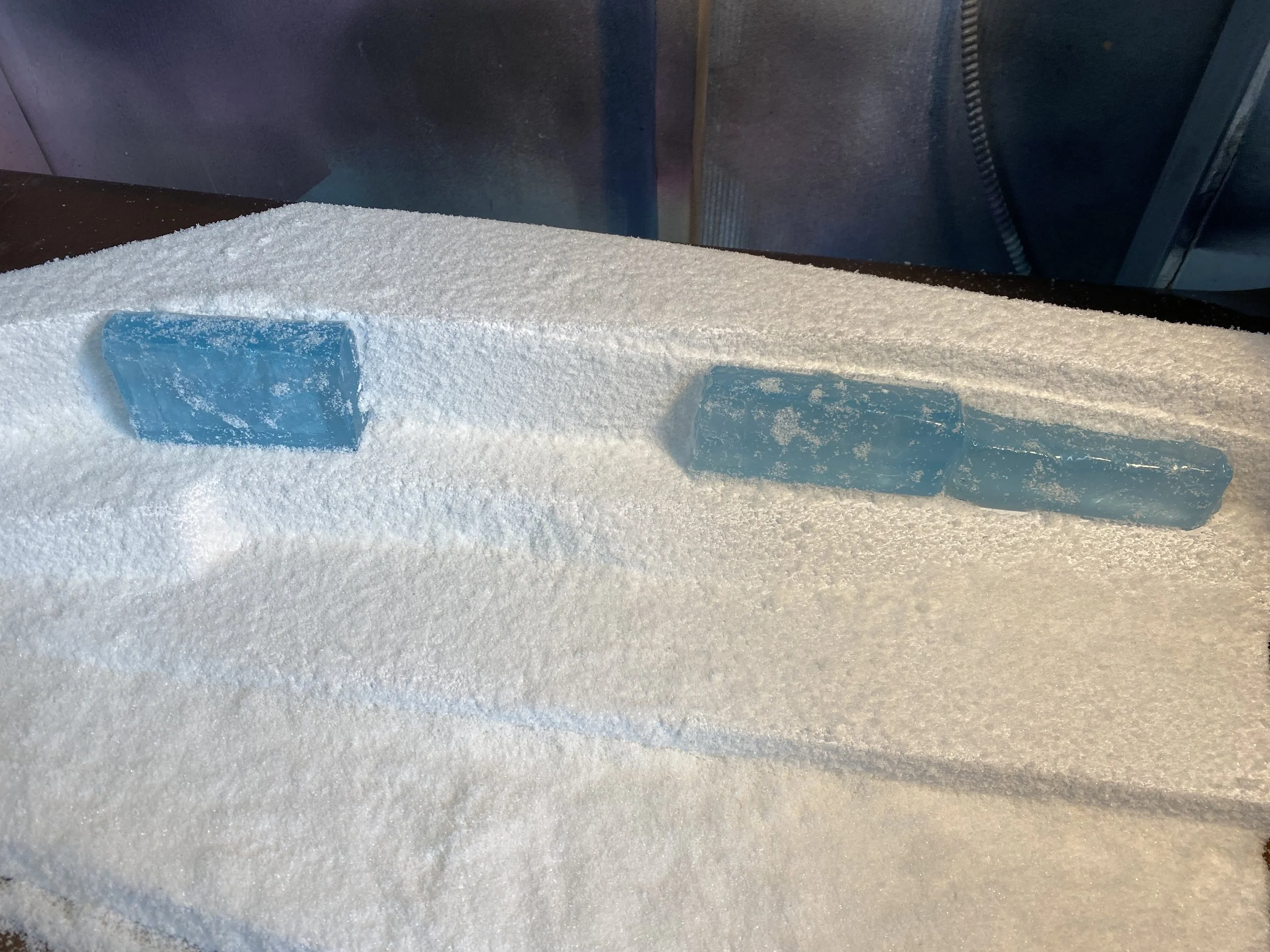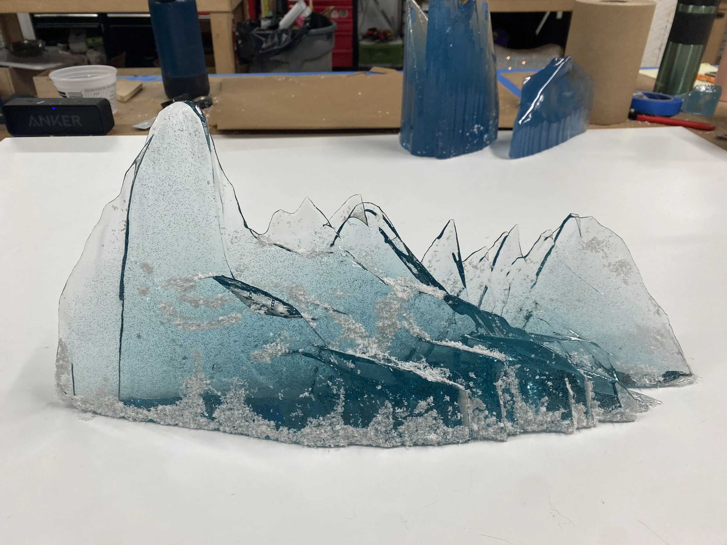 For this project I prepared 3D prints with a coating so that they were ready to mold. I made box molds, while the rest of the team casted them in resin. I also did finishing work on the base, painted, and attached snow. I added finishing touches of snow to some of the glacier pieces, too.